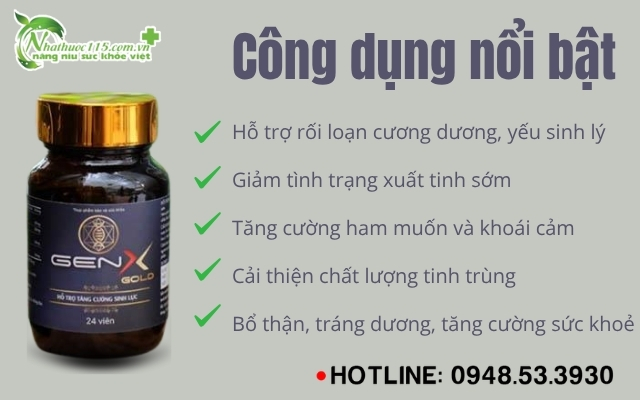 Hiệu quả toàn diện: Gen X Gold không chỉ giúp tăng cường ham muốn, hỗ trợ cương dương và kéo dài thời gian quan hệ mà còn cải thiện chất lượng tinh trùng và nâng cao sức khỏe tổng thể, mang lại lợi ích đa chiều cho người dùng.