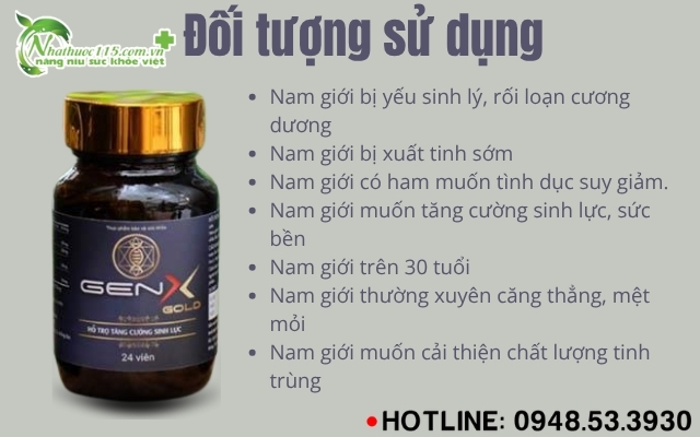 Gen X Gold được khuyến nghị sử dụng cho các đối tượng nam giới trưởng thành có nhu cầu cải thiện và tăng cường sức khỏe sinh lý, cụ thể là: